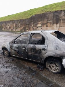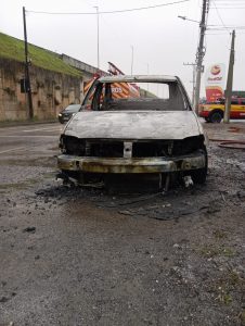 Um veículo foi consumido pelas chamas na tarde deste sábado (27), por volta das 16h, na marginal da BR-101, no bairro Guarita, em Sombrio. Segundo o Corpo de Bombeiros Militar, o incêndio teve início no compartimento do motor, conforme relato do próprio condutor.