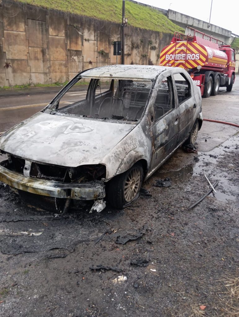 Um veículo foi consumido pelas chamas na tarde deste sábado (27), por volta das 16h, na marginal da BR-101, no bairro Guarita, em Sombrio. Segundo o Corpo de Bombeiros Militar, o incêndio teve início no compartimento do motor, conforme relato do próprio condutor.