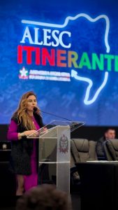 Durante o primeiro dia da Alesc Itinerante em Mafra, a deputada estadual Paulinha (Podemos) fez um discurso contundente em defesa da vida das mulheres e do desenvolvimento regional. A parlamentar reforçou o compromisso com as pautas do Planalto Norte e chamou atenção para os alarmantes índices de violência contra a