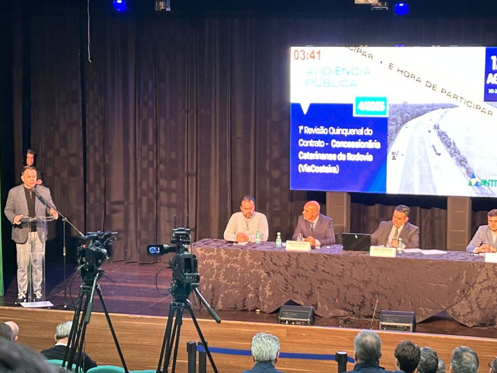 A cidade de Araranguá esteve representada, nesta terça-feira (12), na audiência pública promovida pela Agência Nacional de Transportes Terrestres (ANTT) para discutir a Revisão Quinquenal do contrato de concessão da BR-101/SC, sob responsabilidade da concessionária ViaCosteira. O encontro foi realizado no Parque Diamante, em Tubarão, no Auditório Teatro Marcelo Delpizzo Caneschi.