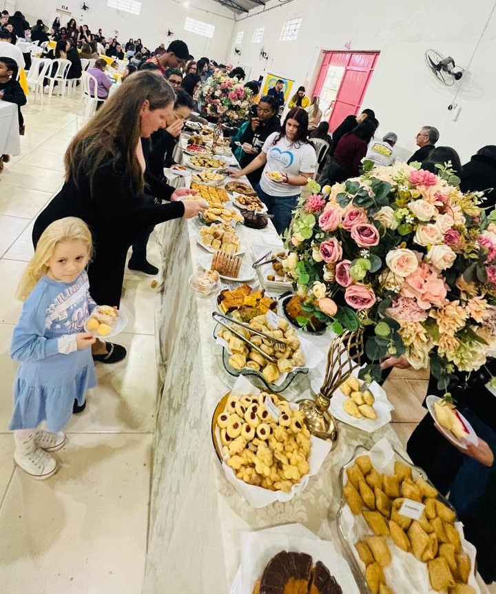 O buffet, elogiado pelos presentes, foi possível graças à colaboração de amigos, voluntários e famílias, com destaque para a Padaria Escola Pão Fraterno, responsável pela produção da maior parte dos itens servidos.