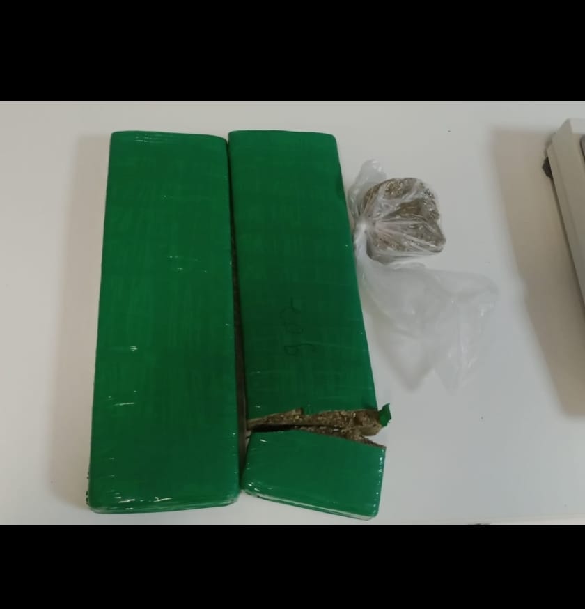 Durante diligências investigativas, os policiais abordaram o suspeito e encontraram aproximadamente 2 kg de maconha em tabletes. Diante da situação, foi dada voz de prisão.