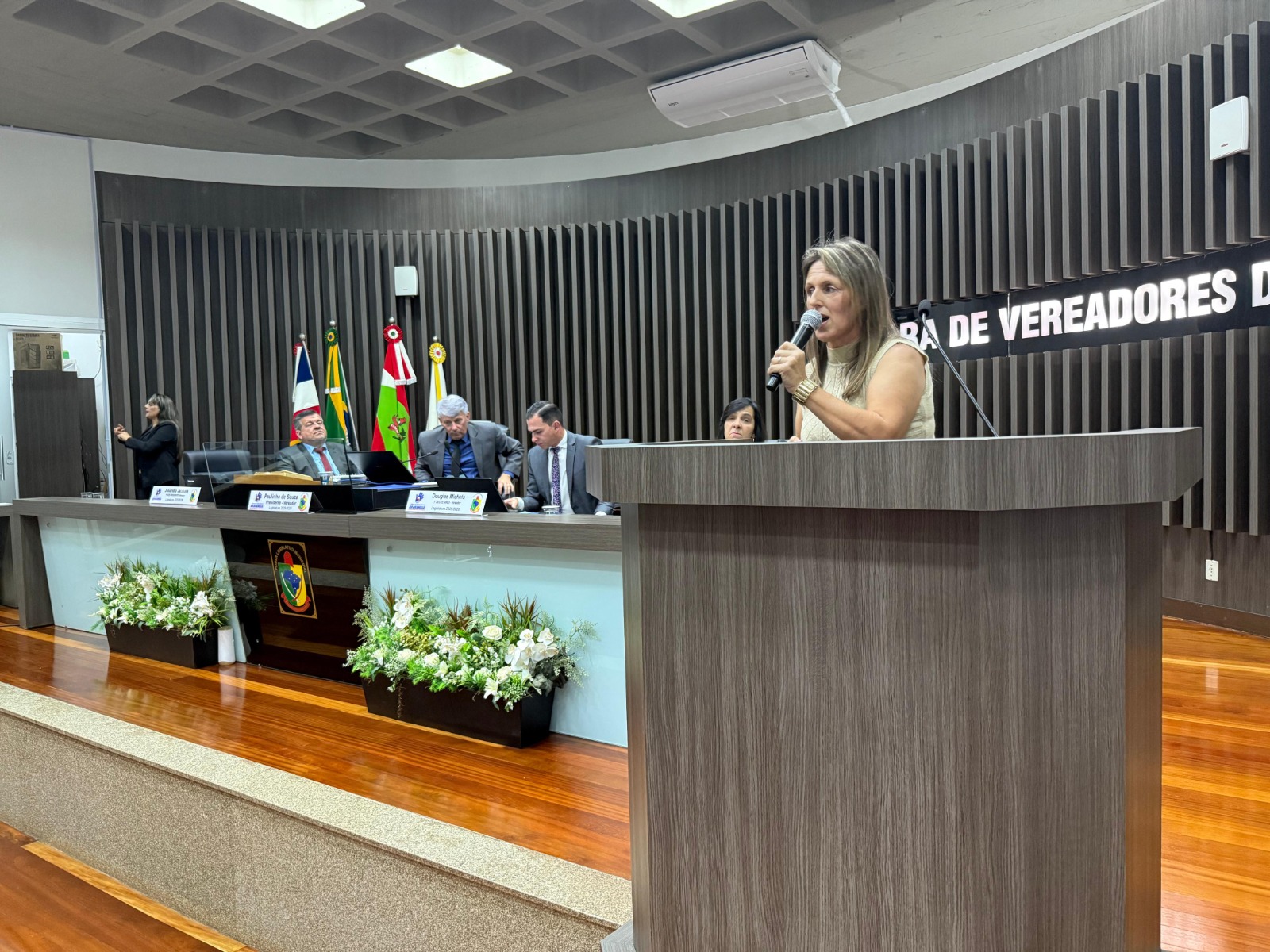 Na sessão ordinária da quarta-feira, 15, Dia do Professor, a Câmara de Vereadores de Araranguá recebeu as professoras Edilene Valeriano e Susi Oliveira, idealizadoras do Projeto INTEGRA. Atendendo ao Requerimento nº 186/2025, de autoria do presidente da Casa, vereador Paulinho Souza, as educadoras utilizaram a Tribuna para apresentar a iniciativa aos parlamentares.