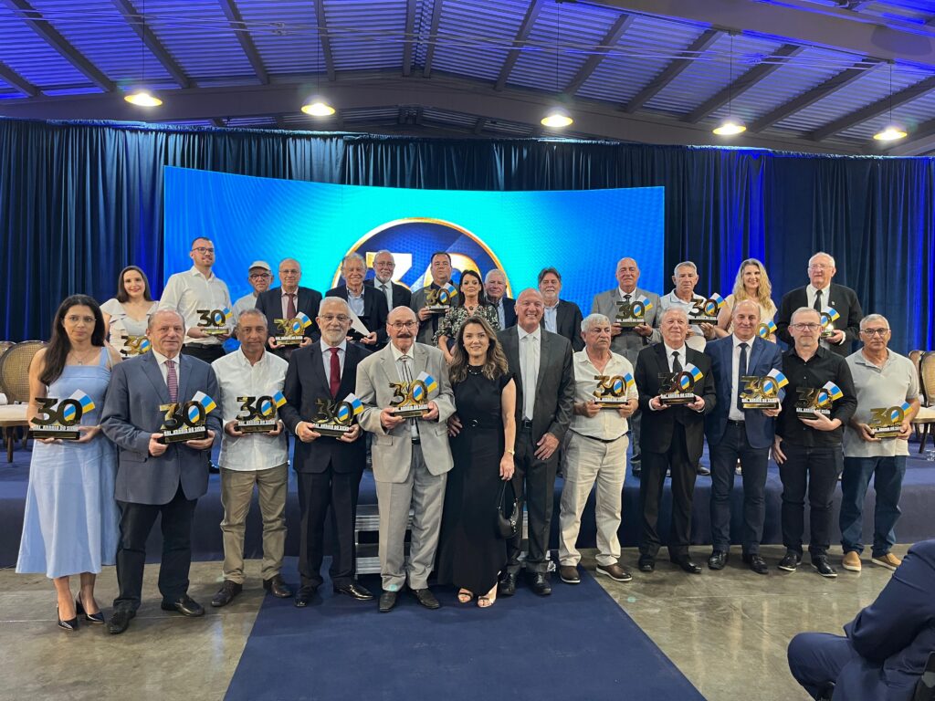 Durante a cerimônia, cada homenageado recebeu um troféu alusivo aos 30 anos de história e crescimento do município.