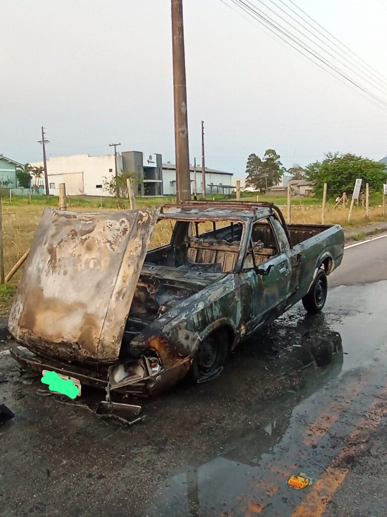 Tratava-se de um incêndio em uma Ford Pampa. O combate às chamas foi realizado com o uso do mangotinho, sendo utilizados aproximadamente 500 litros de água para a completa extinção do fogo. Após o atendimento, o local ficou aos cuidados da CCR, que realizou a sinalização da via e a remoção do veículo.