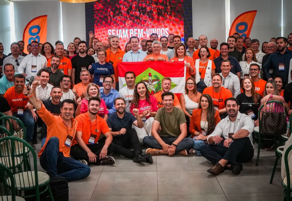 O Partido Novo reuniu prefeitos, parlamentares e lideranças nesta sexta-feira (13), em Pomerode, durante o 3º Encontro Estadual de Mandatários da sigla. O evento debateu o cenário político e a construção de um projeto para as eleições de 2026 em Santa Catarina. A agenda contou com a presença do governador Jorginho Mello (PL) e destacou o nome do prefeito de Joinville, Adriano Silva (Novo), apontado como possível pré-candidato a vice-governador em uma eventual aliança no campo da direita. Também participaram o presidente estadual do partido, Kahlil Zattar, e o presidente nacional da sigla, Eduardo Ribeiro, que também é de Santa Catarina.