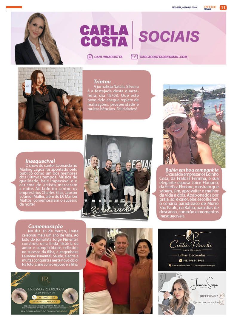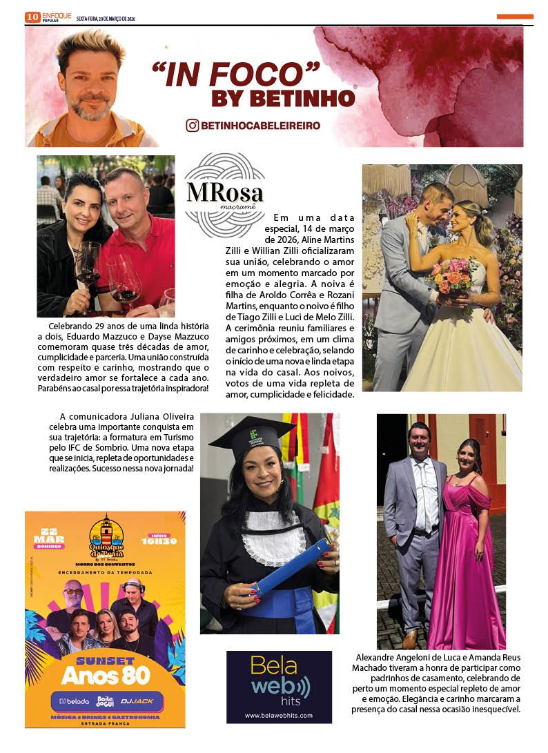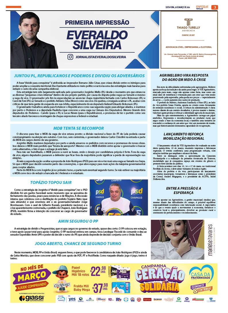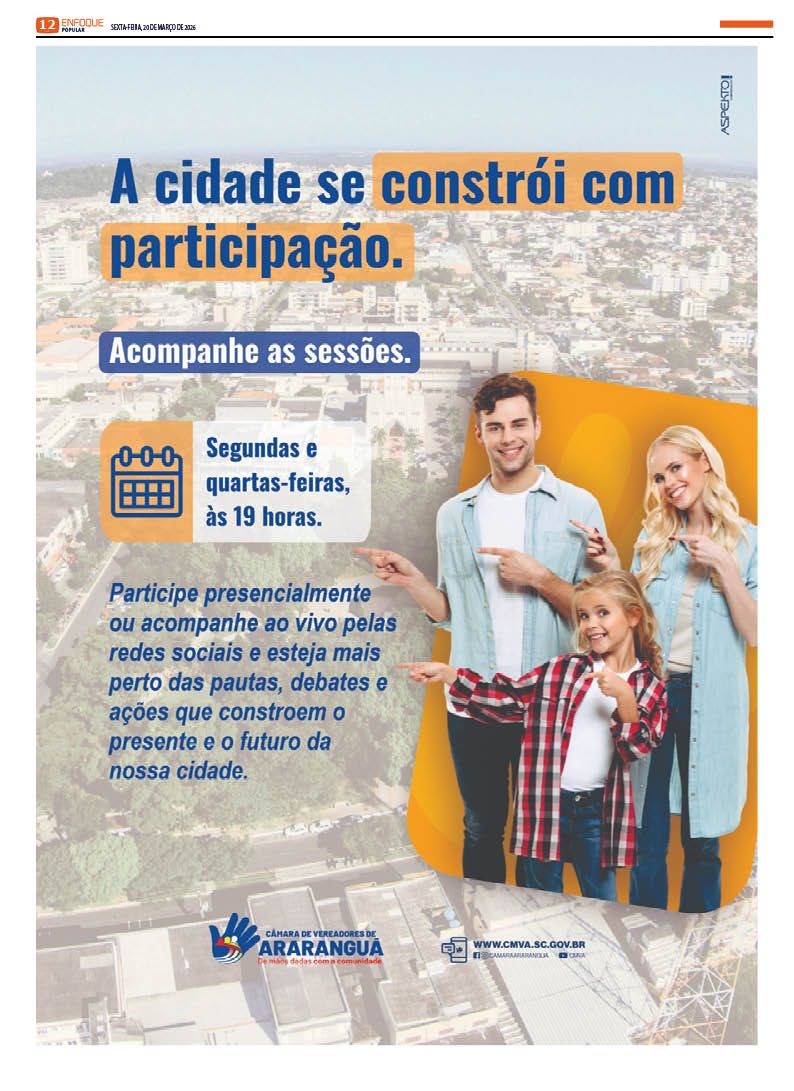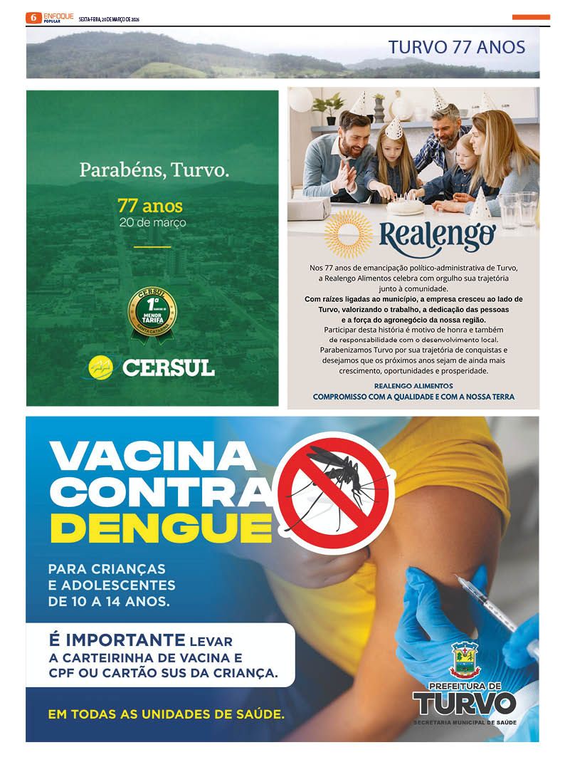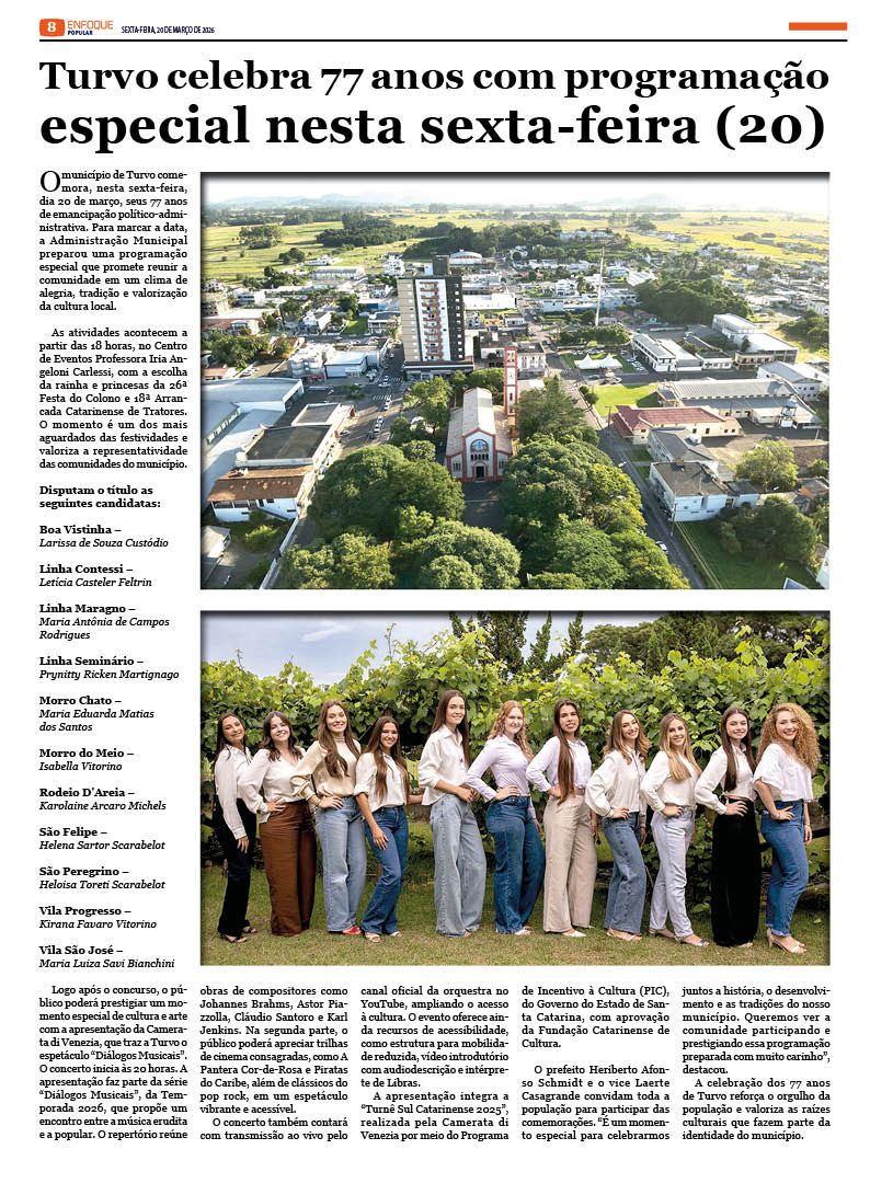 Jornal Enfoque Popular – Edição 2858 – Turvo celebra 77 anos de história, progresso e tradição 20 de março de 2026 Jornal Enfoque Popular 0 Comments More to Explore Jornal Enfoque Popular – Edição 2857 – Foragida da Justiça Jornal Enfoque Popular – Edição 2856 – Justiça determina medidas protetivas contra professor denunciado em Araranguá Jornal Enfoque Popular – Edição 2855 – Pautas da AMESC em discussão Comments (0) Deixe um comentário Cancelar respostaO seu endereço de e-mail não será publicado. Campos obrigatórios são marcados com *Nome * E-mail * Site Salvar meus dados neste navegador para a próxima vez que eu comentar. Comentário *