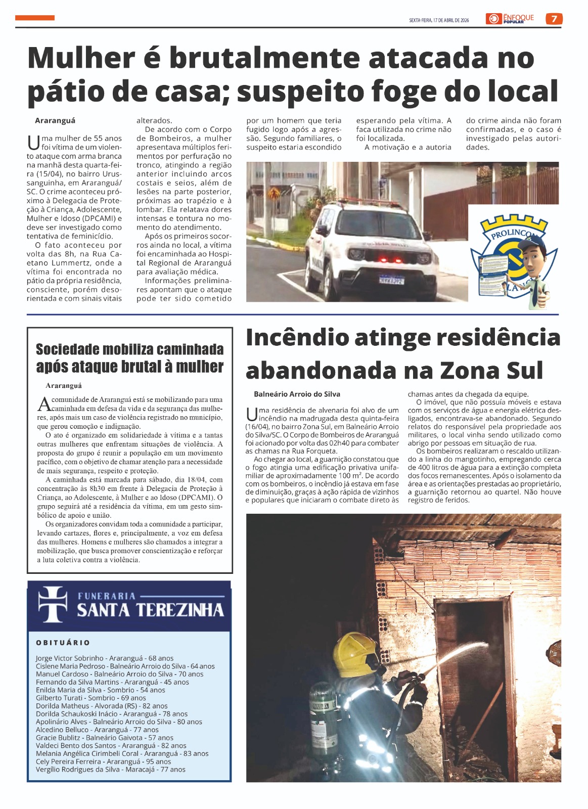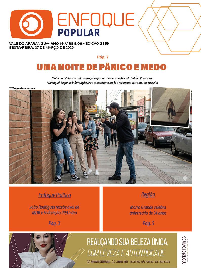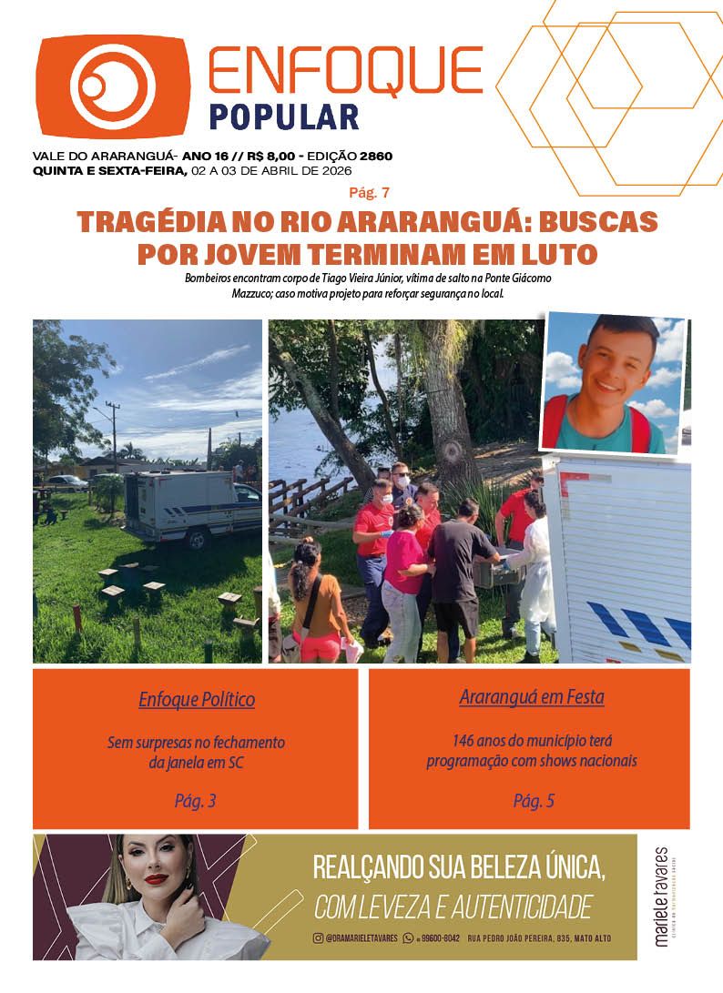 Jornal Enfoque Popular – Edição 2862 – Ataque brutal em Araranguá 17 de abril de 2026 Jornal Enfoque Popular 0 Comments More to Explore Jornal Enfoque Popular – 2861 – O município celebra 146 anos de emancipação político-administrativa VALE DO ARARANGUÁ- ANO 16 // R$ 8,00 - EDIÇÃO 2861 SEXTA-FEIRA, 10 DE ABRIL DE… Jornal Enfoque Popular – 2860 – Tragédia no Rio Araranguá: Buscas por jovem terminam em luto Jornal Enfoque Popular – Edição 2859 – Uma noite de pânico e medo Comments (0) Deixe um comentário Cancelar respostaO seu endereço de e-mail não será publicado. Campos obrigatórios são marcados com *Nome * E-mail * Site Salvar meus dados neste navegador para a próxima vez que eu comentar. Comentário *