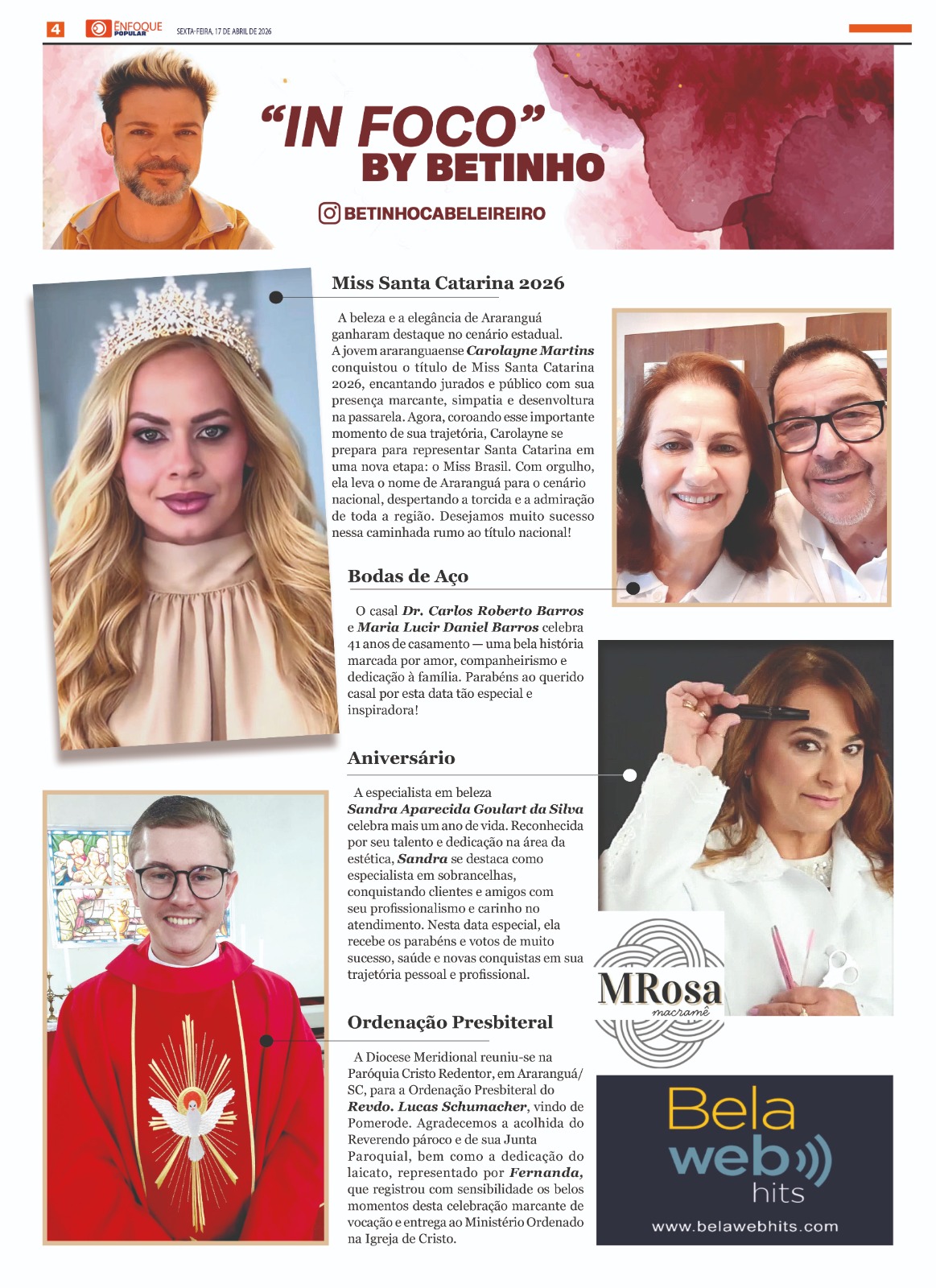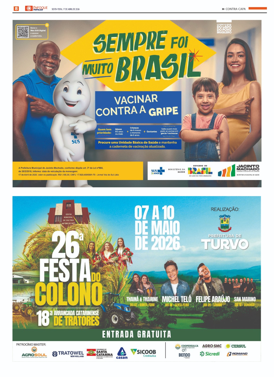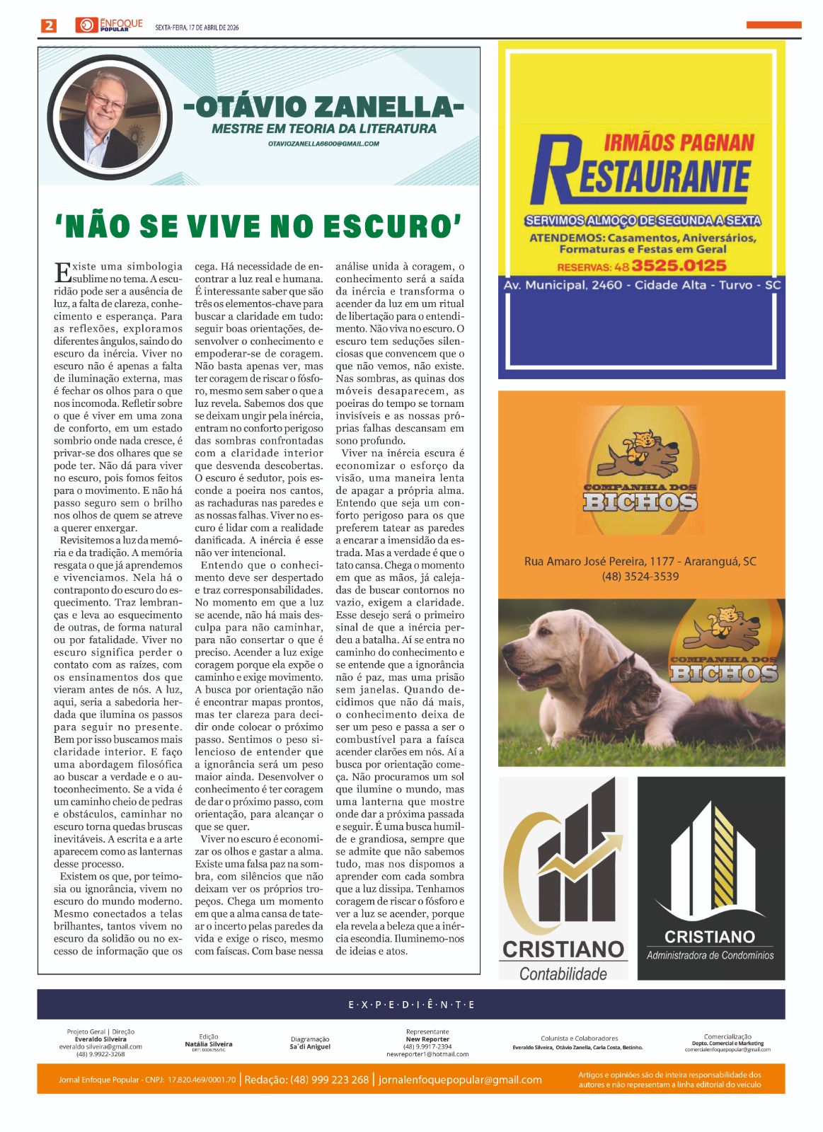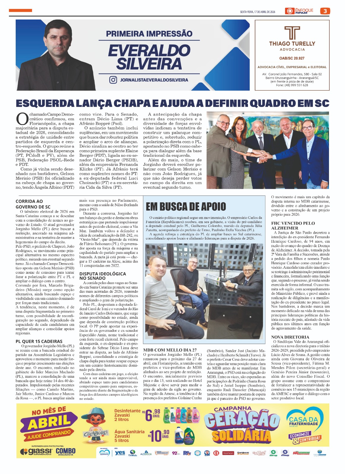 Jornal Enfoque Popular – 2861 – O município celebra 146 anos de emancipação político-administrativa VALE DO ARARANGUÁ- ANO 16 // R$ 8,00 - EDIÇÃO 2861 SEXTA-FEIRA, 10 DE ABRIL DE…