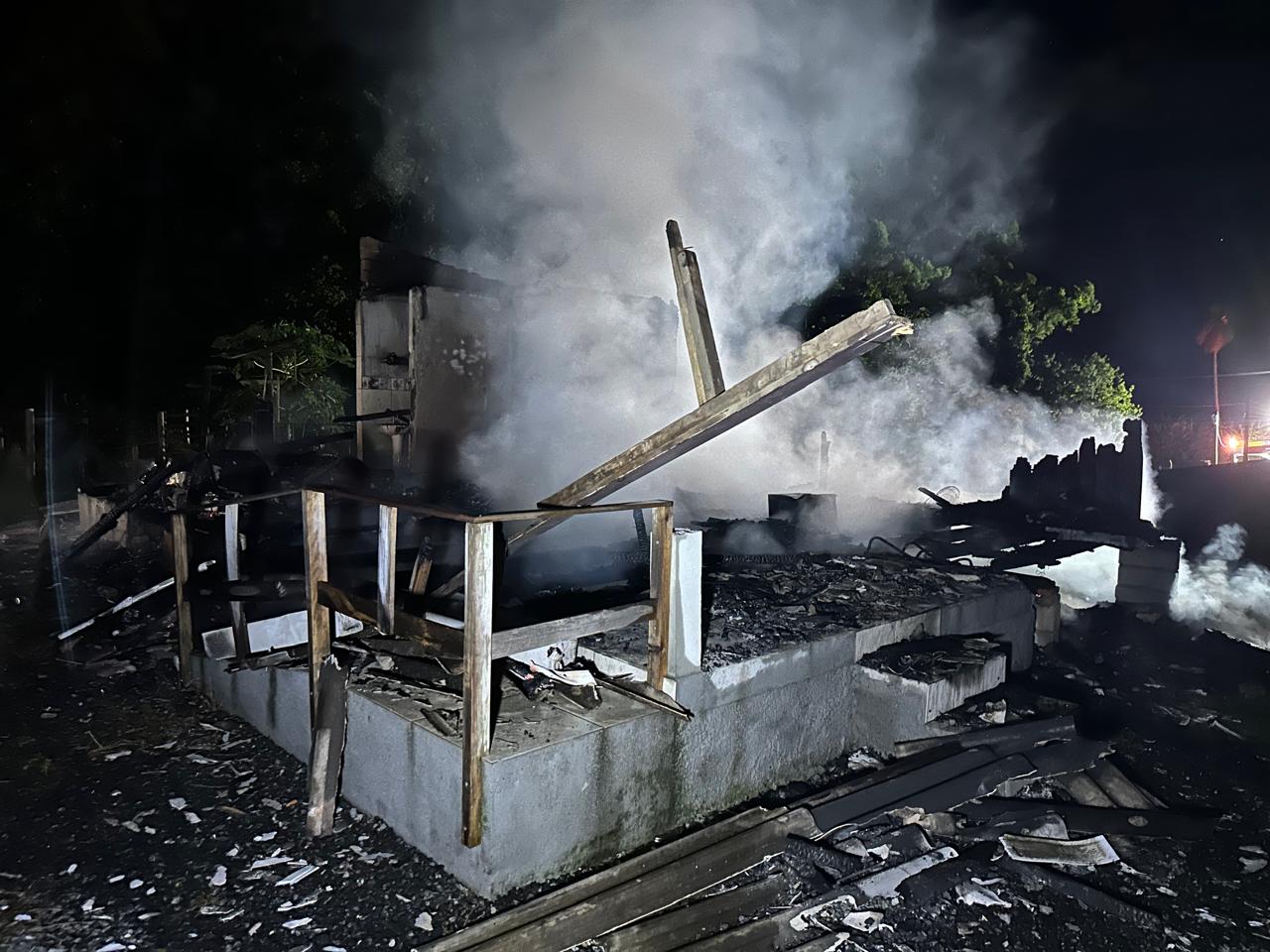 Incêndio destrói residência de madeira em área rural de Criciúma