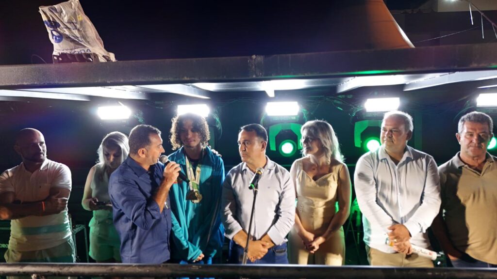 Durante o ato, foi prestada homenagem ao atleta paralímpico Paulo Jhon Vitor Honorato, que representa o município em competições das APAEs, recebendo reconhecimento público pela trajetória esportiva.