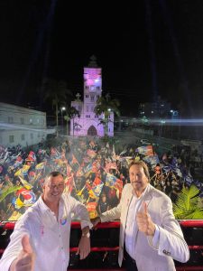 A Avenida Sete de Setembro, em frente à Praça Hercílio Luz no centro de Araranguá, foi palco na noite desta quinta-feira, 03, do último dos 12 Comícios promovidos pela Coligação ‘Pra fazer muito Mais’, composta pelos Partidos MDB, PSD, União Brasil, Republicanos, PDT e a Federação PSDB/Cidadania. O ‘Encontro