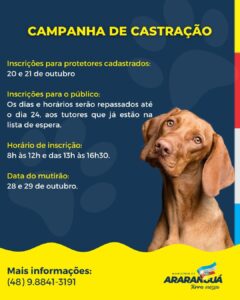 📢 ATENÇÃO, TUTORES! CAMPANHA DE CASTRAÇÃO EM ARARANGUÁ 🐾