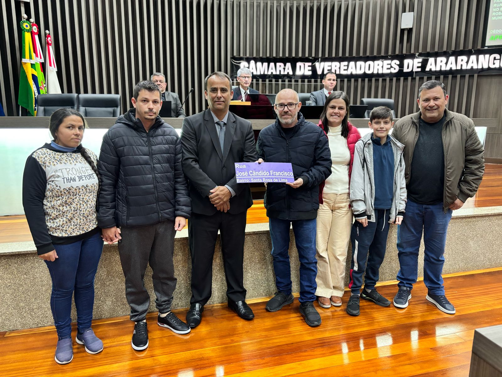 Na sessão ordinária da Câmara de Vereadores de Araranguá realizada na noite da última quarta-feira (6), foi aprovado o Projeto de Lei Ordinária nº 058/2025, que denomina a Rua 1 do Loteamento Santa Rita, no bairro Santa Rosa de Lima, como ‘Rosa Corrêa Demétrio’. A proposta, de autoria do vereador